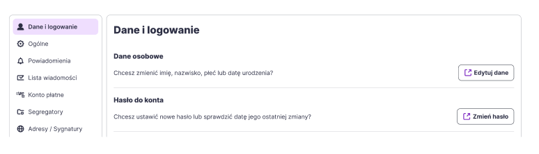 W Opcjach dodaliśmy Dane i logowanie. Szybko przejdziesz z nich do edycji danych, hasła i metod odzyskiwania konta.